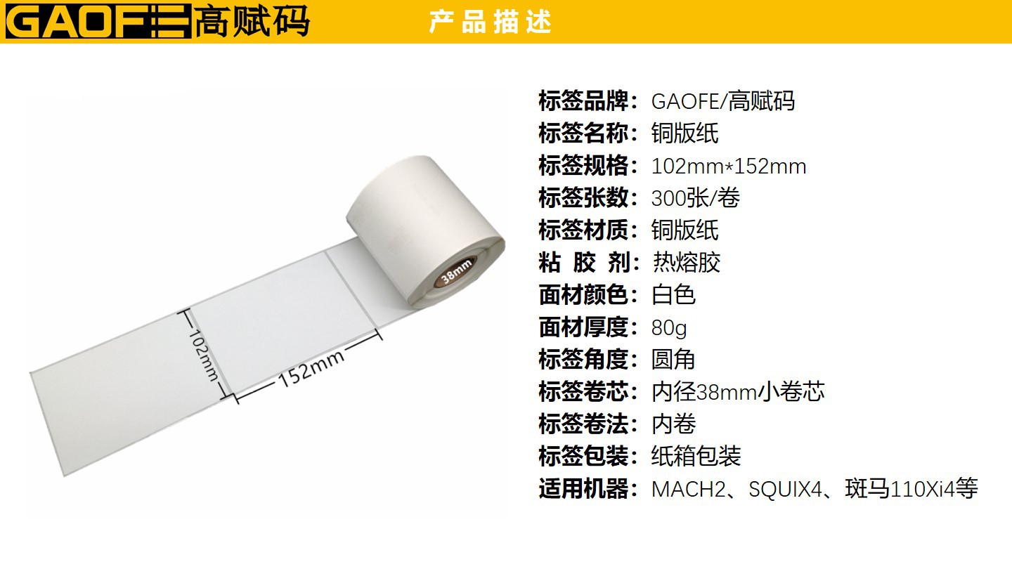 銅版紙標(biāo)簽 102mm*152mm 條形碼標(biāo)簽紙 不干膠標(biāo)簽 貼紙 高賦碼