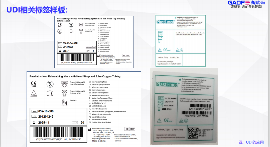(1)如使用RFID,則必須同時(shí)附帶一維條碼或二維碼標(biāo)簽; (2)標(biāo)簽不能僅有碼圖,需要同時(shí)附有標(biāo)識(shí)說明; (3)標(biāo)簽印刷質(zhì)量符合ISO15415標(biāo)準(zhǔn)的C級(jí)以上; (4)UDI編碼與碼圖掃碼內(nèi)容必須一致、正確; (5)符合 AIDC 與 HRI 原則(包含機(jī)器識(shí)讀部分和人工可識(shí)讀部分)